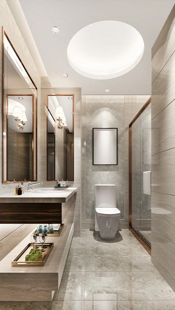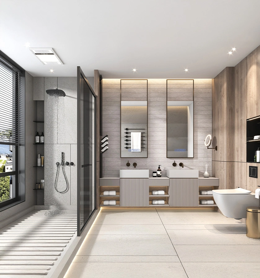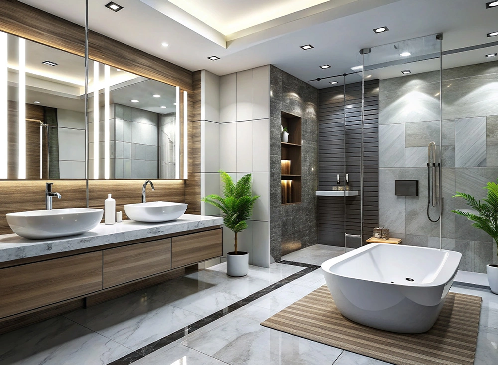 Stylish tiles, modern fixtures, custom vanities, designer lighting, and serene spa-like retreats.